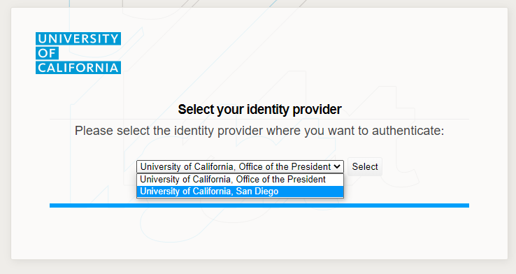 3. If you accidentally select UC Office of the President, clear your browser history and cache, and repeat Step #1, and select UC San Diego.